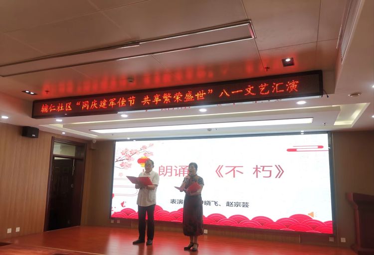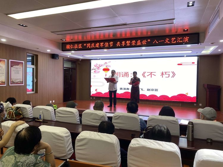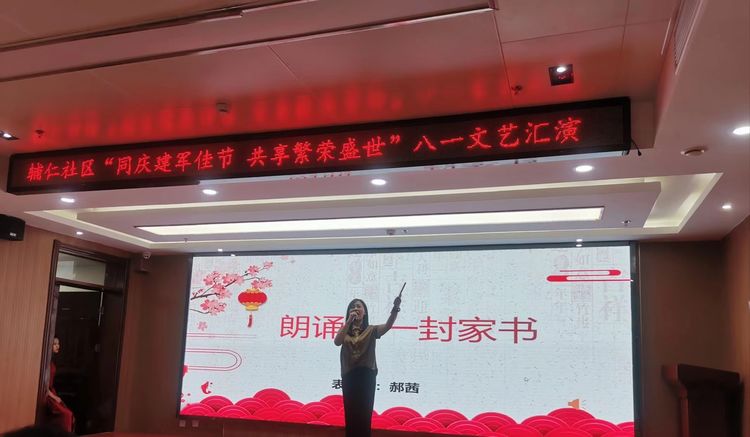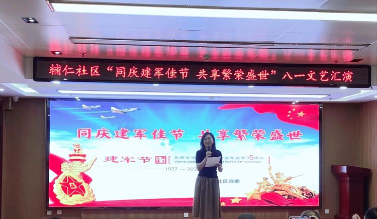 八月里,骄阳似火,英雄城,战旗猎猎。 嘹亮的军号声响彻古城南昌,她如同浩荡春雷,宣告了人民武装的诞生,预示着一个新时代的开始。党领导下的人民军队用鲜血筑成了共和国的不朽丰碑。中国人民解放军,一次又一次的站在历史的浪尖,闯过一道又一道的艰难险阻。她,不愧为人民的威武之师、常胜之师。为庆祝中国人民解放军建军95周年,辅仁社区开展“同庆建军佳节 共享繁荣盛世”八一文艺汇演,各民族群众共同参加,普天同庆,唱响新时代强军主旋律。